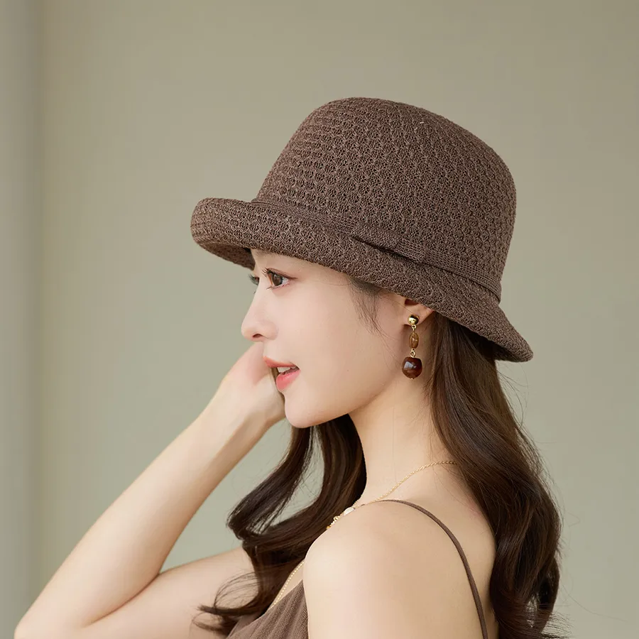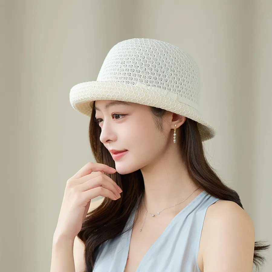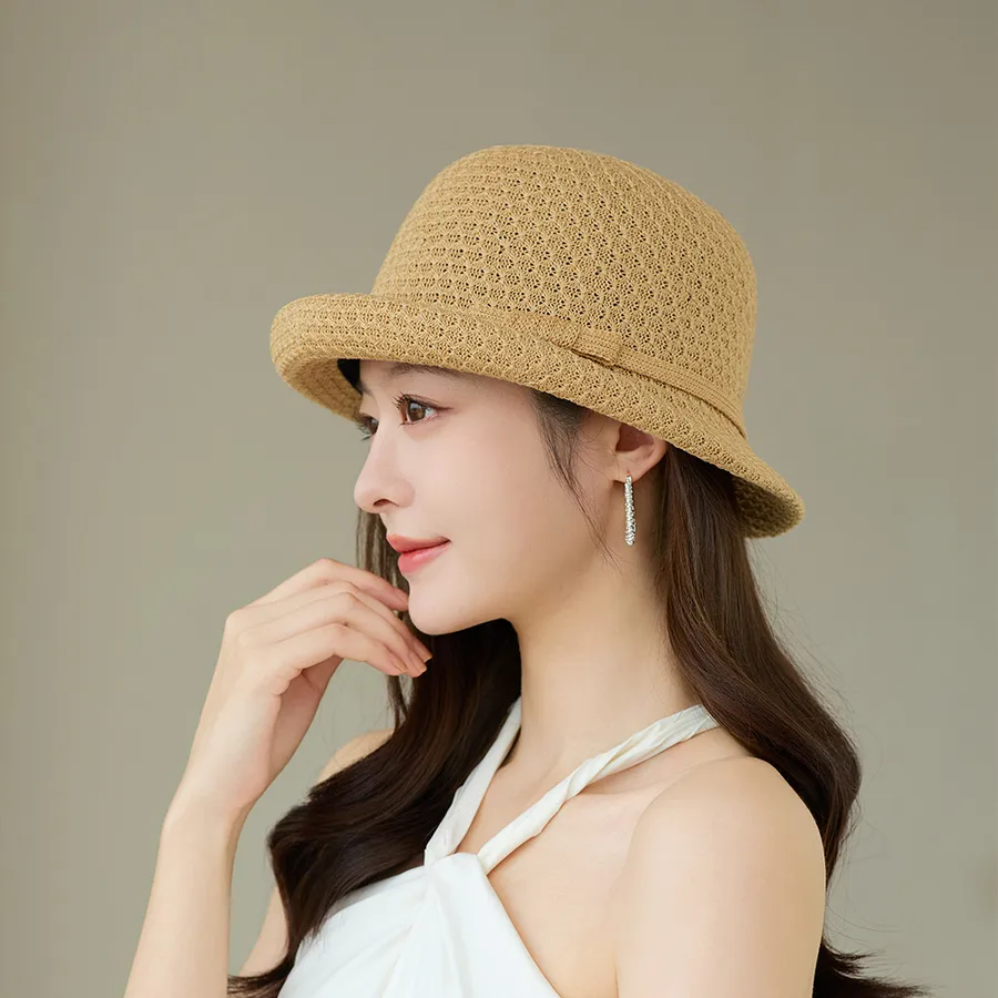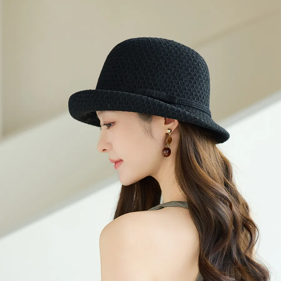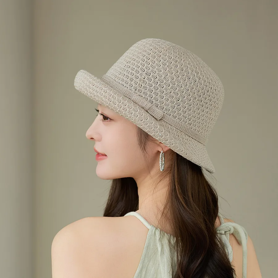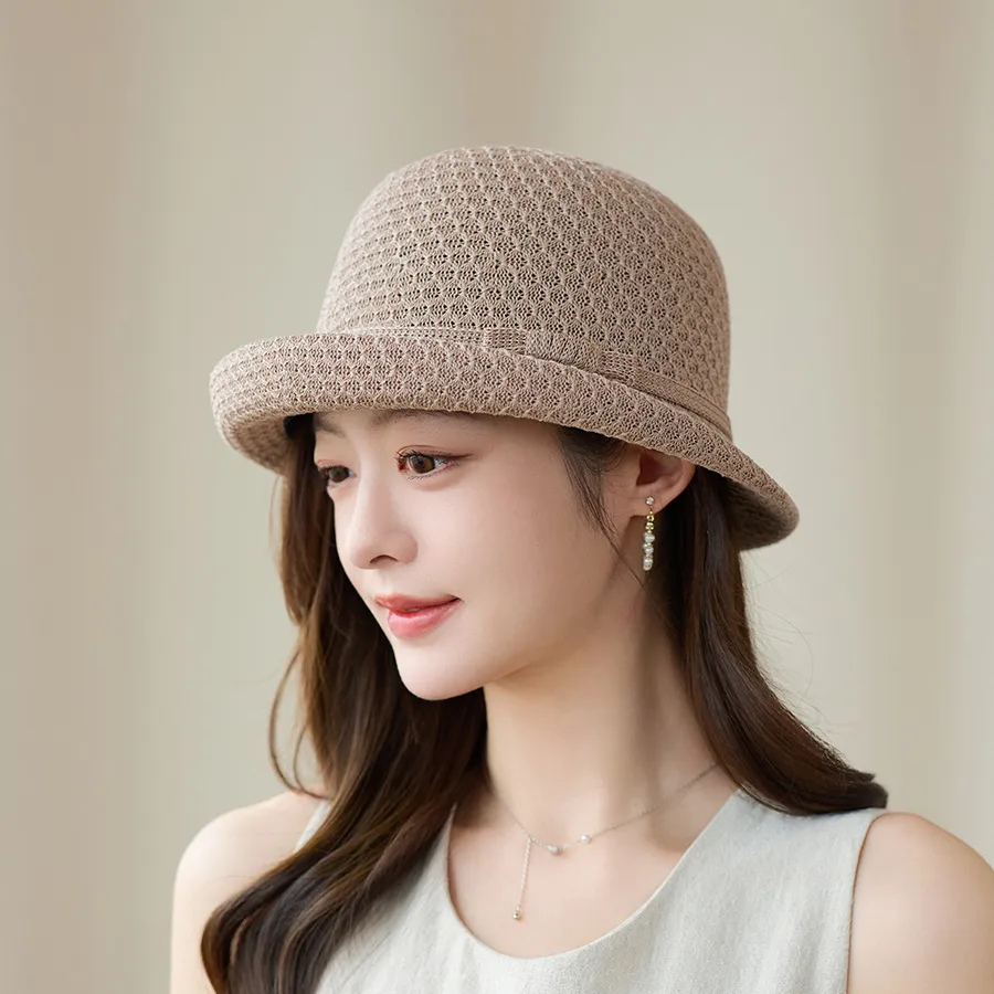 Sun Hat with Curved Eaves, Knit Material Featuring Elastic Drawstring Design for Adults